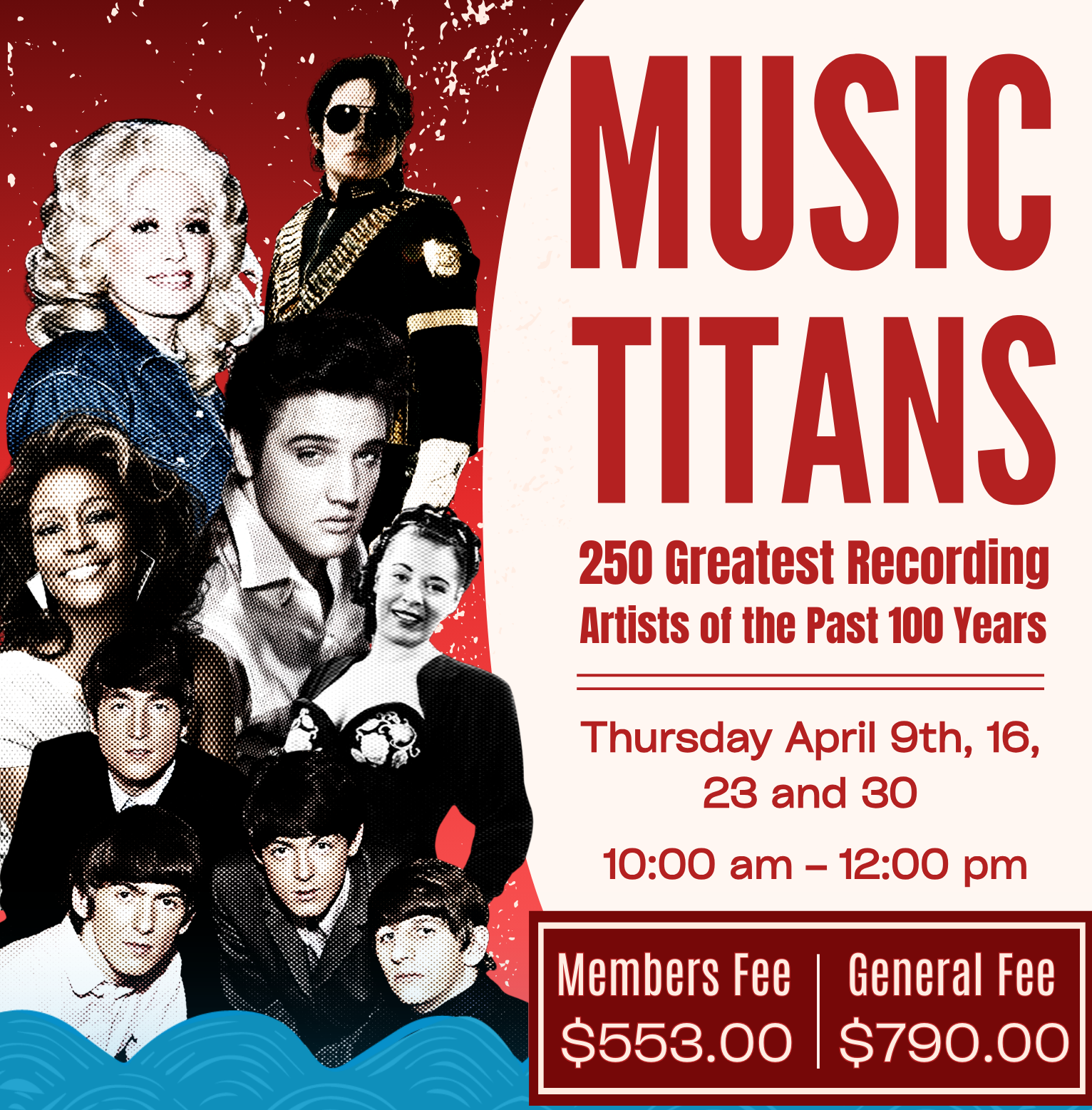 An interactive class that explores the most impactful music of the past 100 years in the English-speaking world. All major genres will be included with special emphasis on many of the key artists from such genres as jazz, pop, rock & roll, rock, R&B, rap, classical, folk, and country. There will be lively discussion, and lots of music to listen to. A few of the artists whose lives and music will be explored include— Louis Armstrong, Bing Crosby, Billie Holiday, Duke Ellington, Benny Goodman, Elvis Presley, the Beatles, the Rolling Stones, etc.