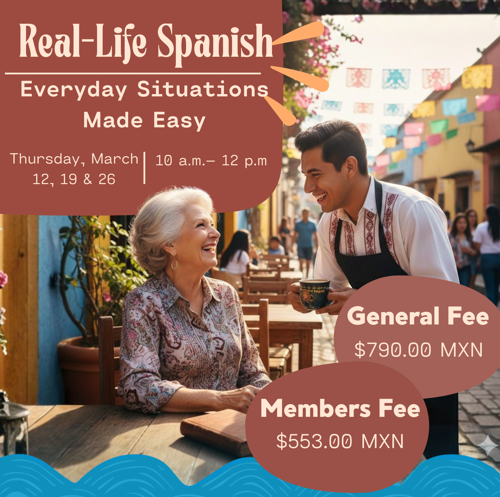 Through everyday scenarios such as dining at a restaurant 🍽️, shopping 🛍️, and handling simple transactions at the bank 🏦, participants will practice common phrases, expand useful vocabulary, and learn natural, everyday expressions.